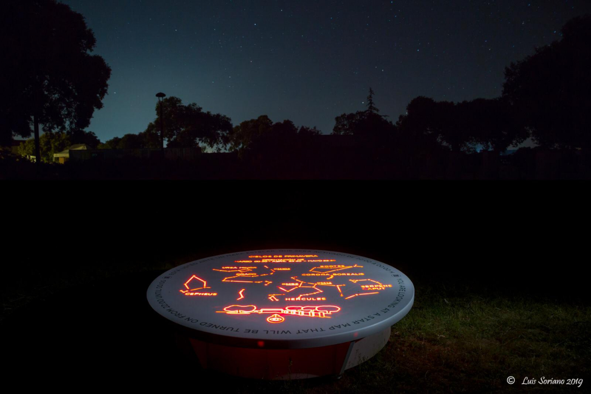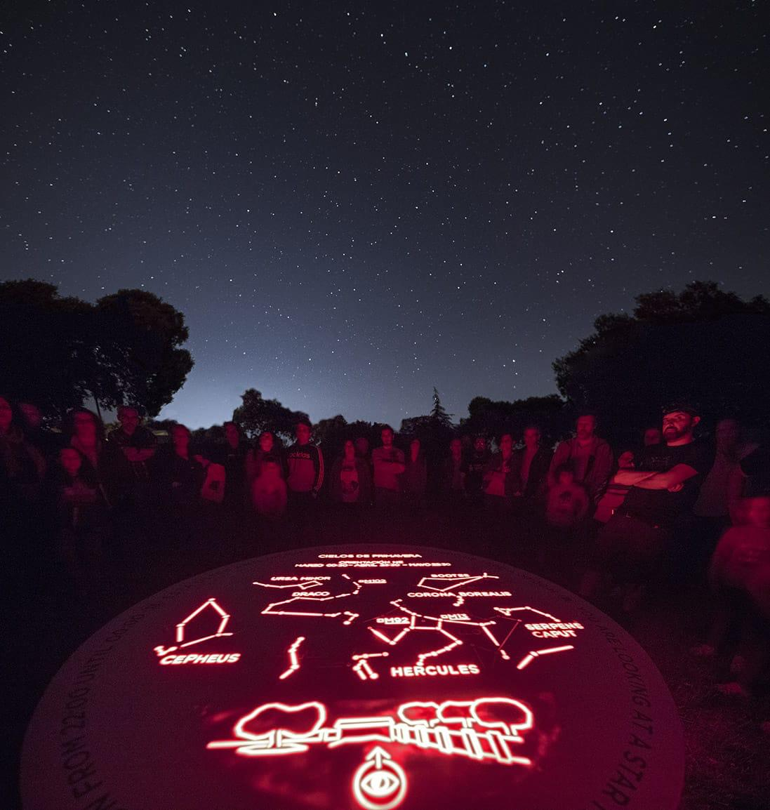 Estos miradores están situados en enclaves privilegiados y son piedras artificiales retroiluminadas que muestran, de forma esquemática, las principales estrellas y constelaciones que se ven en las distintas estaciones del año, y que se activan desde las 22:00 y hasta las 06:00 horas.