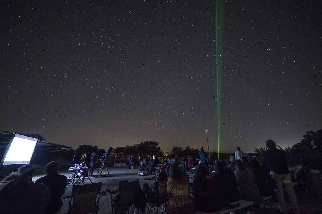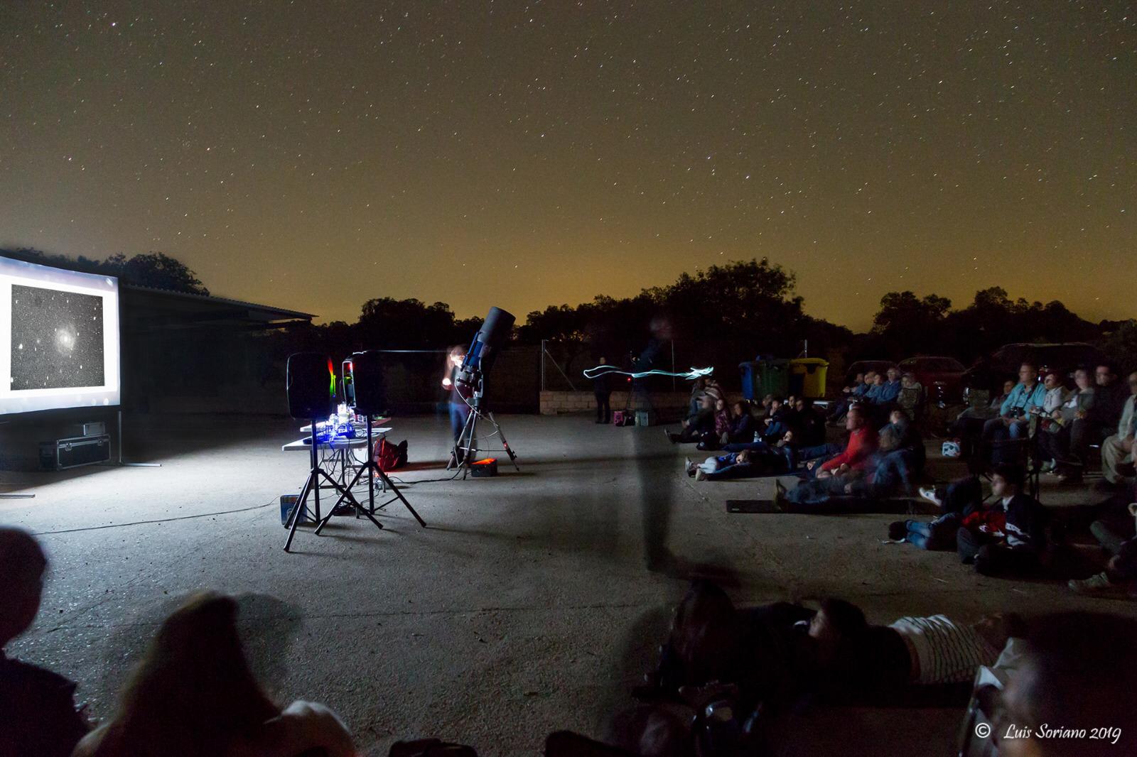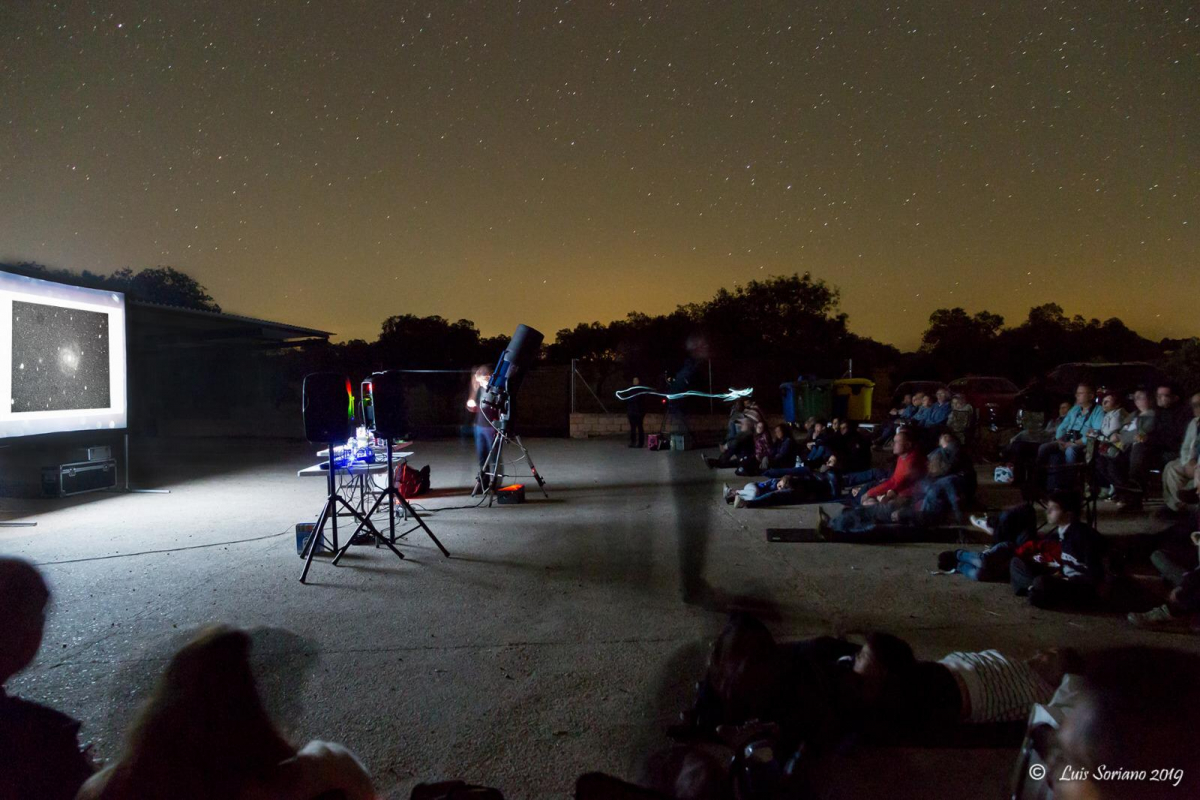 La observación astronómica tuvo lugar en la explanada de La Cocosa y contó con una asistencia de unas 100 personas de todas las edades, desde las 23.00 a la 1:00 horas, y consistió en una sesión nocturna con Telescopios Robotizados y pantalla gigante, que permitió observar los sistemas y elementos más lejanos e impresionantes de nuestros cielos, como nebulosas, galaxias, etc,…