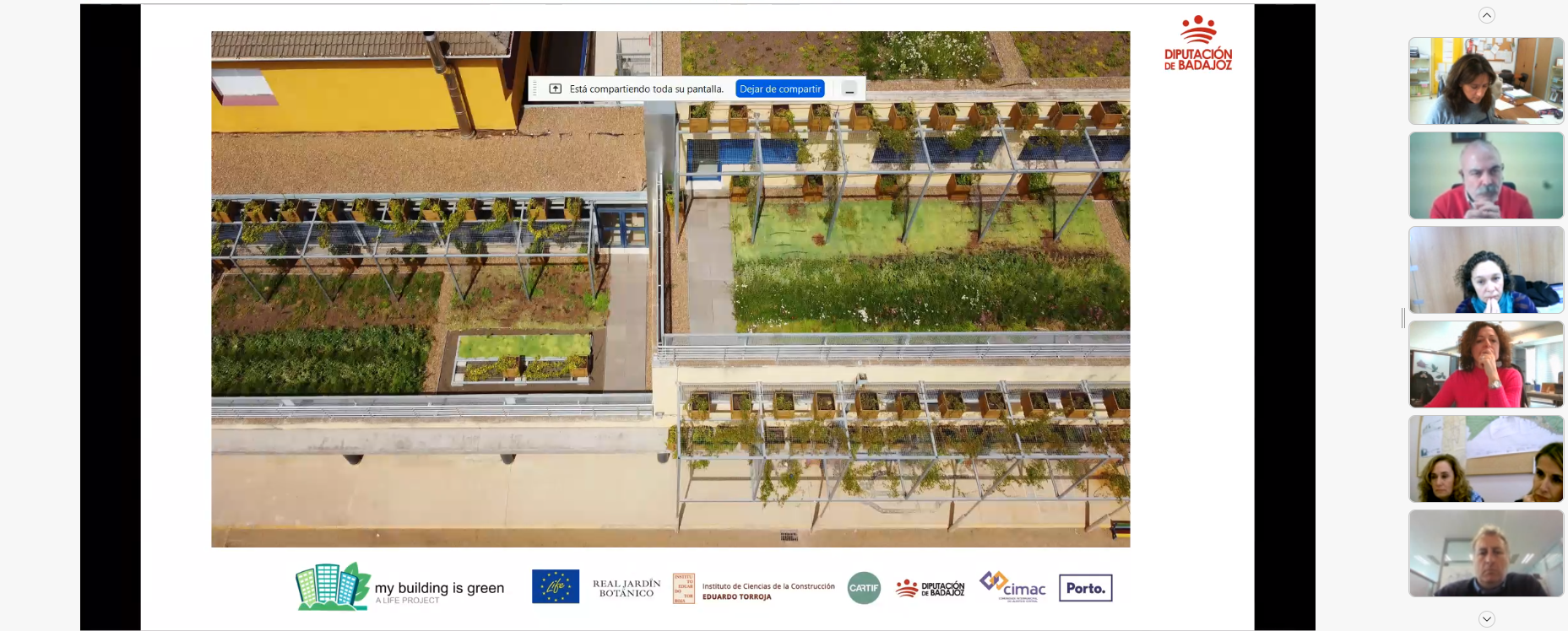 El proyecto europeo LIFE-MyBUILDINGisGREEN, pariticpan la Diputación de Badajoz a través del Área de Desarrollo Rural y Sostenibilidad, junto al Instituto de Ciencias de la Construcción Eduardo Torroja (IETcc-CSIC), el Centro Tecnológico CARTIF de Valladolid, la Comunidad Intermunicipal del Alentejo Central (CIMAC) y la Cámara Municipal de Oporto, con la coordinación del Real Jardín Botánico del Consejo Superior de Investigaciones Científicas (CSIC).