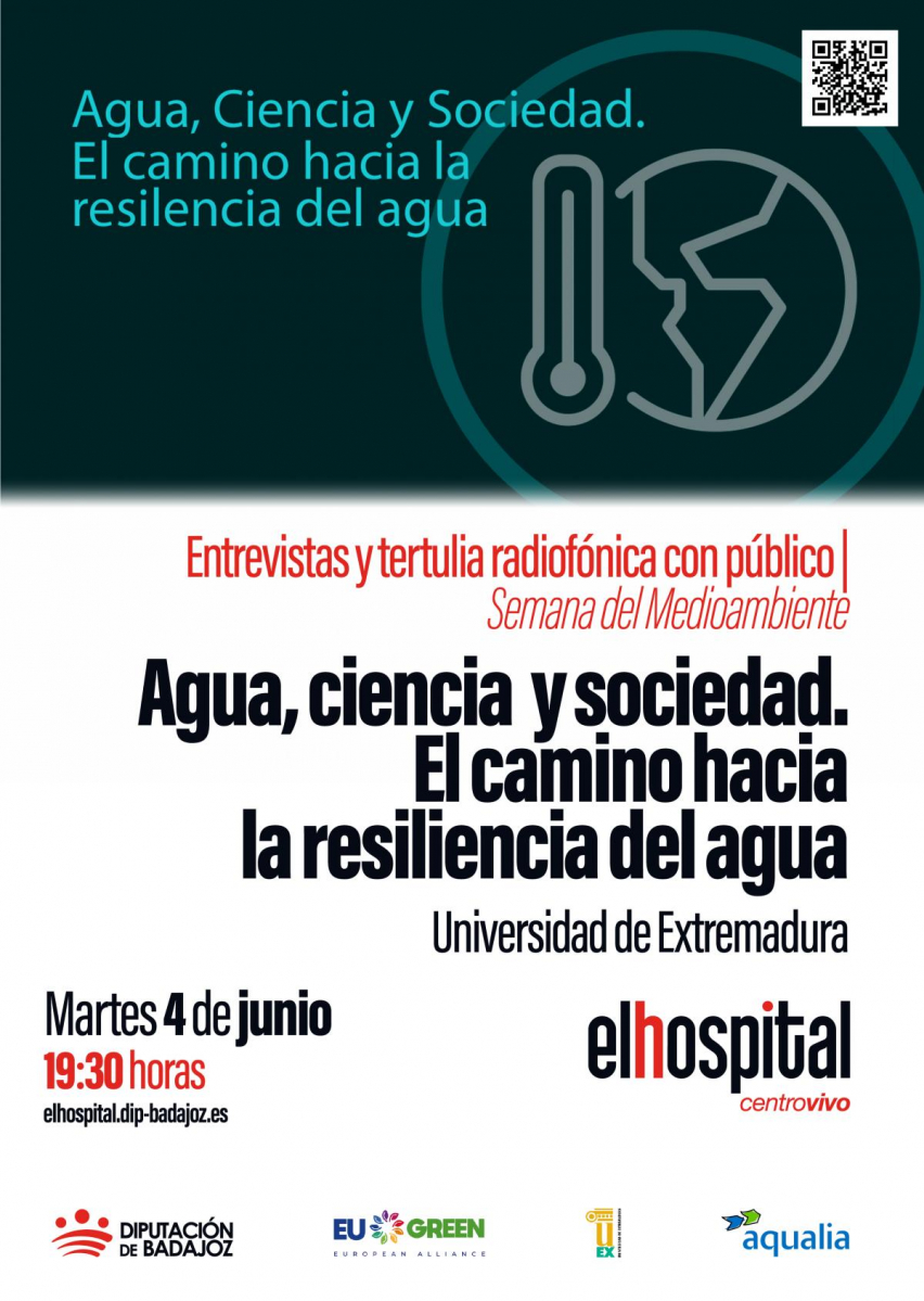 Por último, el Consorcio Promedio, junto a la Universidad de Extremadura, a través del Servicio de Difusión de la Cultura Científica, ha programado un programa de radio en vivo con coloquio abierto al público, el martes 04 de junio a las 19:30h, titulado “Agua, Ciencia y Sociedad. El camino hacia la resiliencia del agua”, que contará con la participación de investigadores e investigadoras de la UEX, Aqualia y Promedio para tratar temas como la resiliencia al agua, el garantizar la calidad del agua de manera sostenible o conocer las mejores prácticas e investigaciones científicas y tecnológicas que se están llevando a cabo en estos momentos en Extremadura.