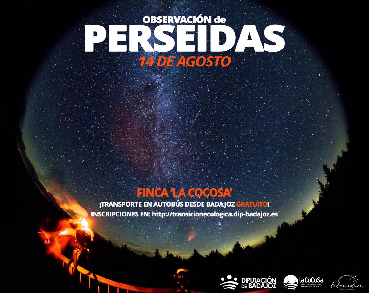Diputación de Badajoz, a través del Área de Transición Ecológica, ha organizado en el Centro de Promoción y Protección del Cielo de la Finca ‘La Cocosa’, una sesión de observación astronómica con motivo de la lluvia de estrellas que tendrá lugar el próximo 14 de agosto provocada por las Perseidas, mediante la observación de las mismas a simple vista, y de otros fenómenos astronómicos a través de telescopios.