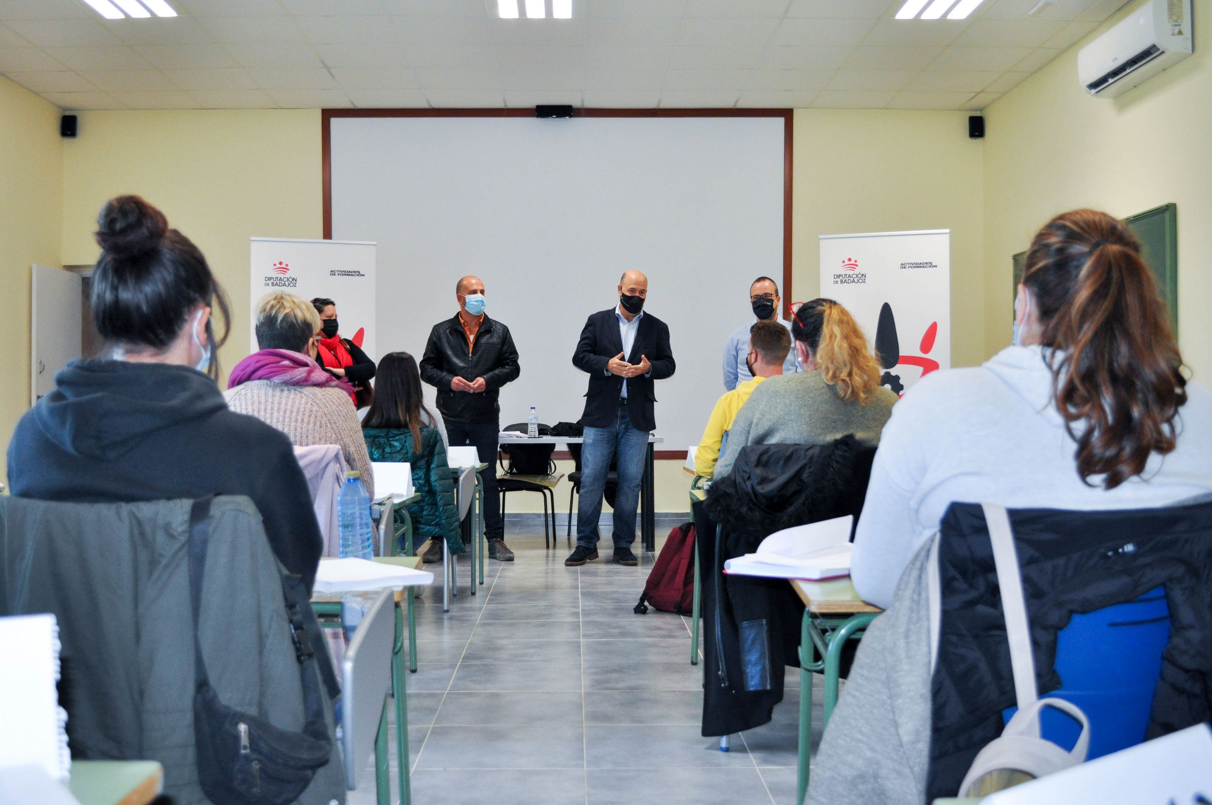 La acción formativa comenzó ayer, 27 de octubre, y hoy ha sido inaugurada por Lorenzo Molina Medina, diputado delegado del Área. Ha estado acompañado por Francisco de Asís Martínez Fermoselle, alcalde de Fuentes de León; Esther Lorente Barros, concejala de educación y cultura de Fuentes de León; y por José Luis Martín Ortiz, técnico de formación del Proyecto MIRADA.