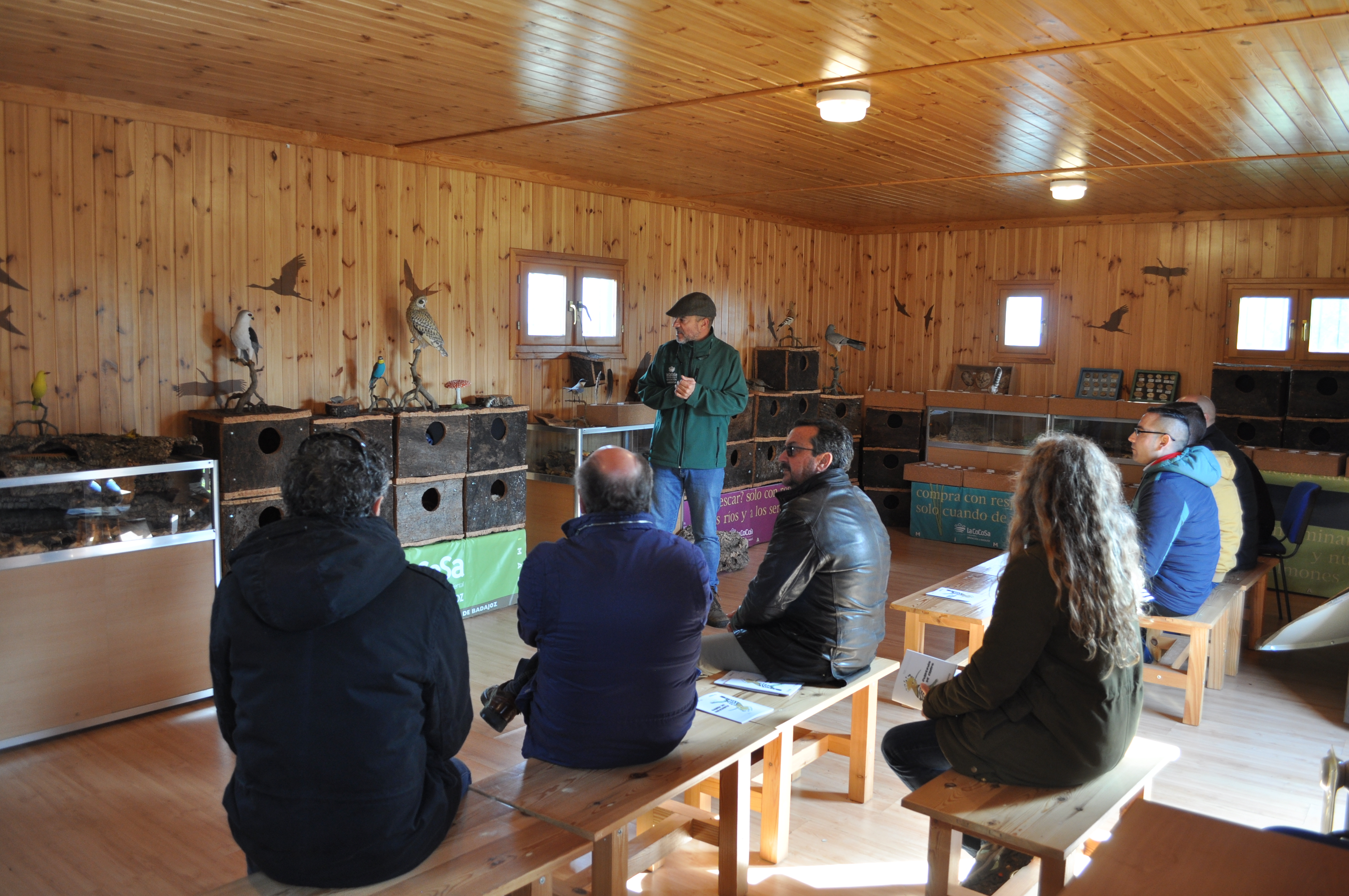 Un grupo de 6 internos del Centro Penitenciario de Badajoz, han visitado esta mañana la Finca La Cocosa, gestionada por el Área de Desarrollo Rural y Sostenibilidad de Diputación de Badajoz, en la cual, a manos de Arturo López, técnico medioambiental, han conocido tanto las instalaciones de cuidado del ganado ovino cómo la sede del Museo Itinerante de Medio Ambiente de la Provincia de Badajoz (MIMABA).