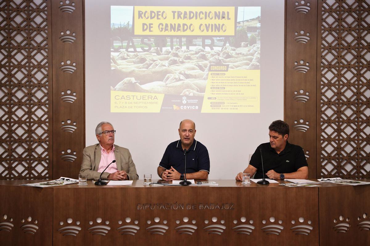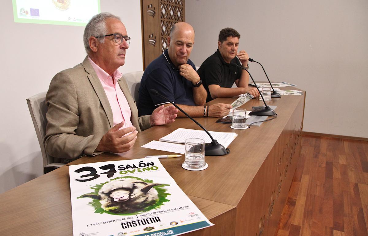 La próxima semana, del 6 al 8 de septiembre, se celebrará la 37ª Edición del Salón de Ovino de Castuera, retomando la normalidad sin restricciones ni limite de aforo. Así lo han presentado esta mañana en rueda de prensa el diputado delegado del Área de Desarrollo Rural y Sostenibilidad de la Diputación Provincial de Badajoz, Lorenzo Molina, acompañado del diputado provincial del Área de Cultura y Deportes, alcalde de Castuera y presidente del Salón Ovino, Francisco Martos, y por César Cabanillas, director técnico del Salón Ovino.