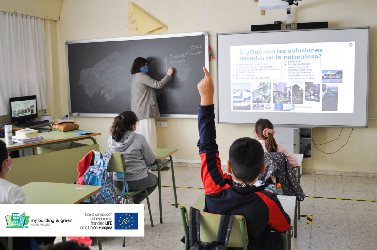 El colegio fue seleccionado el año pasado por el proyecto europeo LIFE - myBUILDINGisGREEN, como edificio piloto en el que se aplicarán Soluciones Basadas en la Naturaleza (NBS) para la adaptación local de edificios docentes y sociales al cambio climático.