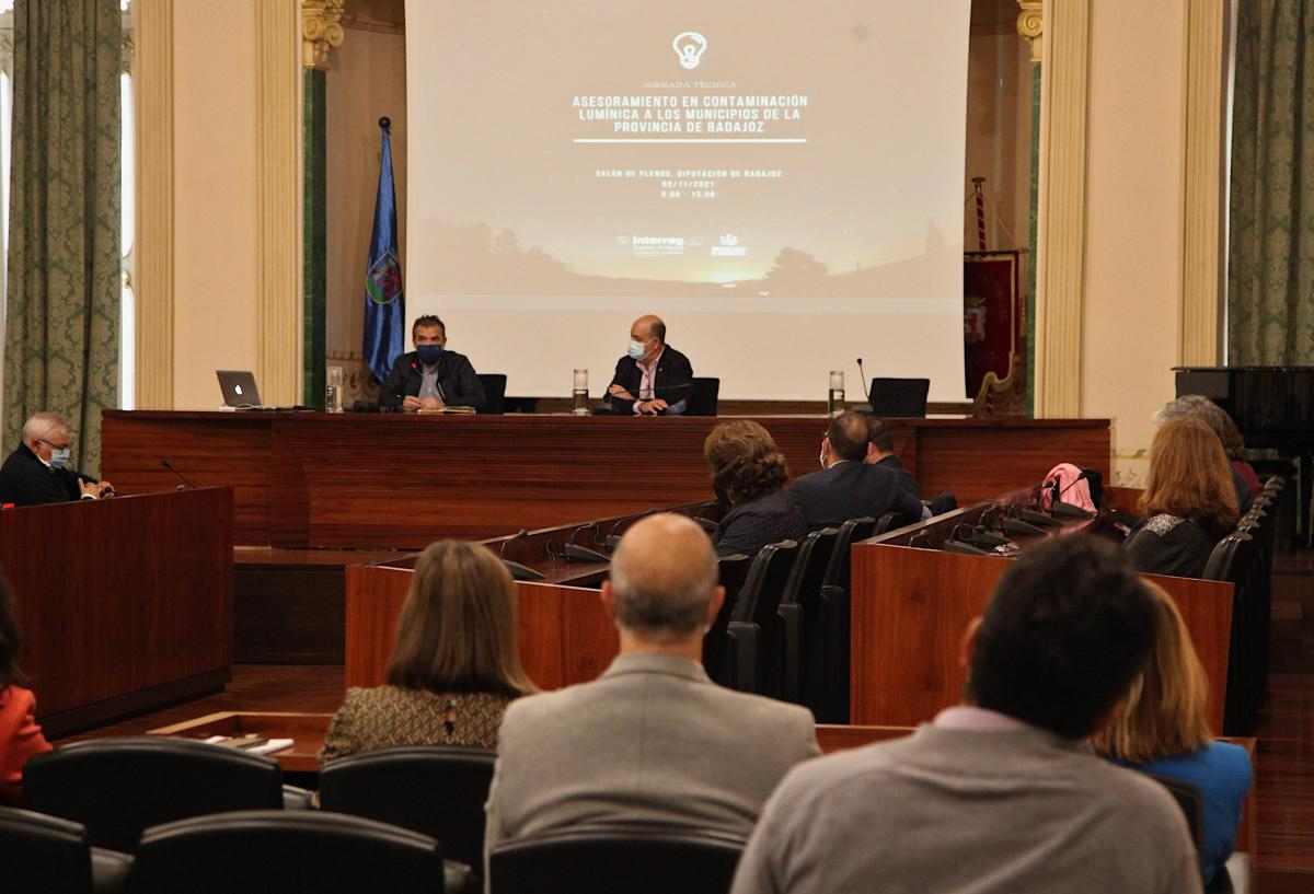 El salón de plenos de la Diputación de Badajoz ha acogido esta mañana una jornada técnica de asesoramiento en contaminación lumínica dirigida a los municipios de la provincia pacense. A la misma han asistido tanto alcaldes como alcaldesas, así como técnicos municipales responsables del alumbrado público o encargados de la promoción del turismo de sus municipios.