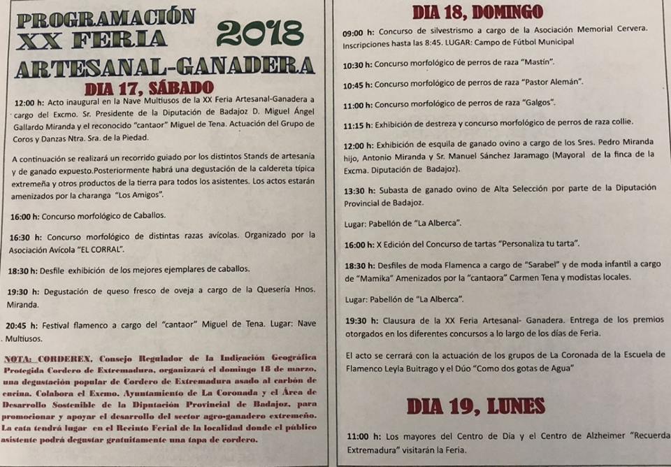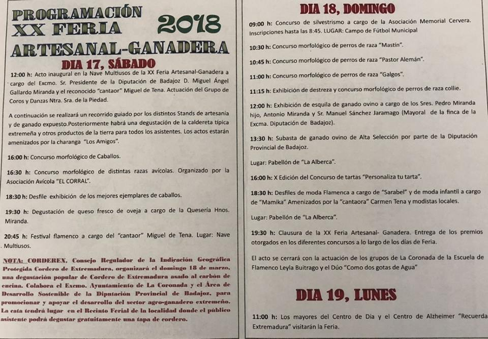 La Diputación de Badajoz participará en la XX Feria Artesanal Ganadera de La Coronada
