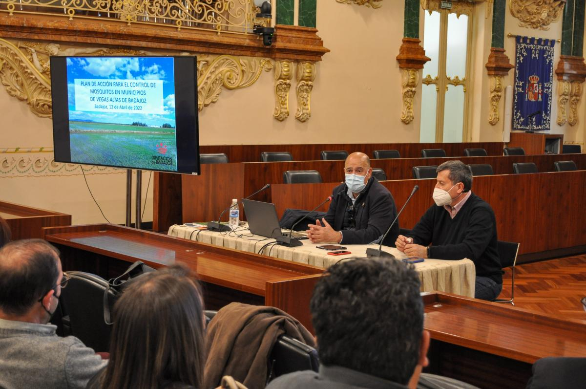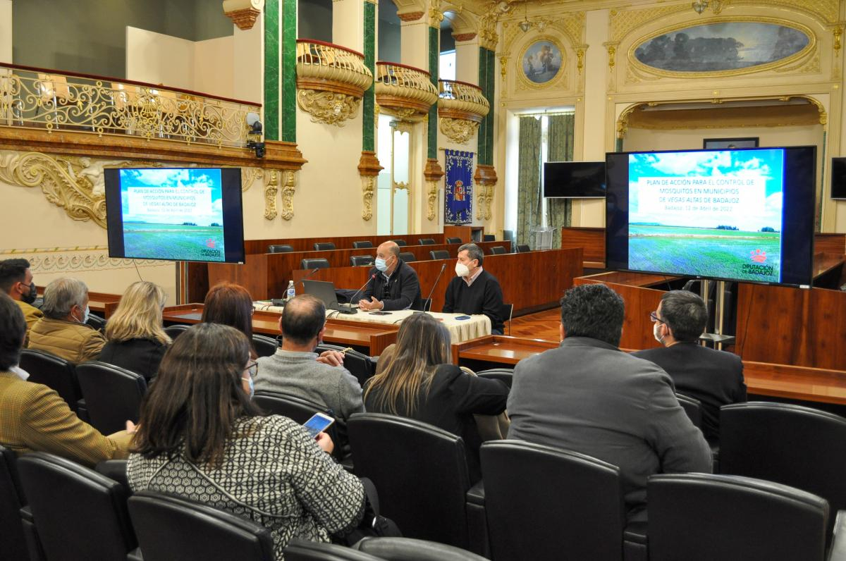 La Diputación de Badajoz, a través del Área de Desarrollo Rural y Sostenibilidad, ha presentado esta mañana en una reunión con los alcaldes de los municipios de las Vegas Altas afectados por la plaga de mosquitos, los detalles del nuevo plan de acción que se va a llevar a cabo en la zona en los próximos meses.