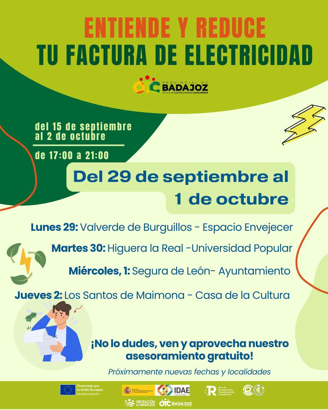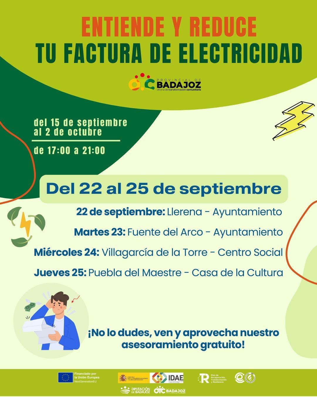 Desde mediados de septiembre hasta principios de diciembre de 2025, la OTC ofrecerá este servicio a los municipios con el fin de ayudar a sus habitantes a entender su factura. El Punto de Atención a la Factura se instalará de lunes a jueves, de 17:00h a 21:00h, en un municipio diferente cada día. Se les proporcionará un servicio personalizado, para lo que deberán llevar su propia factura eléctrica.