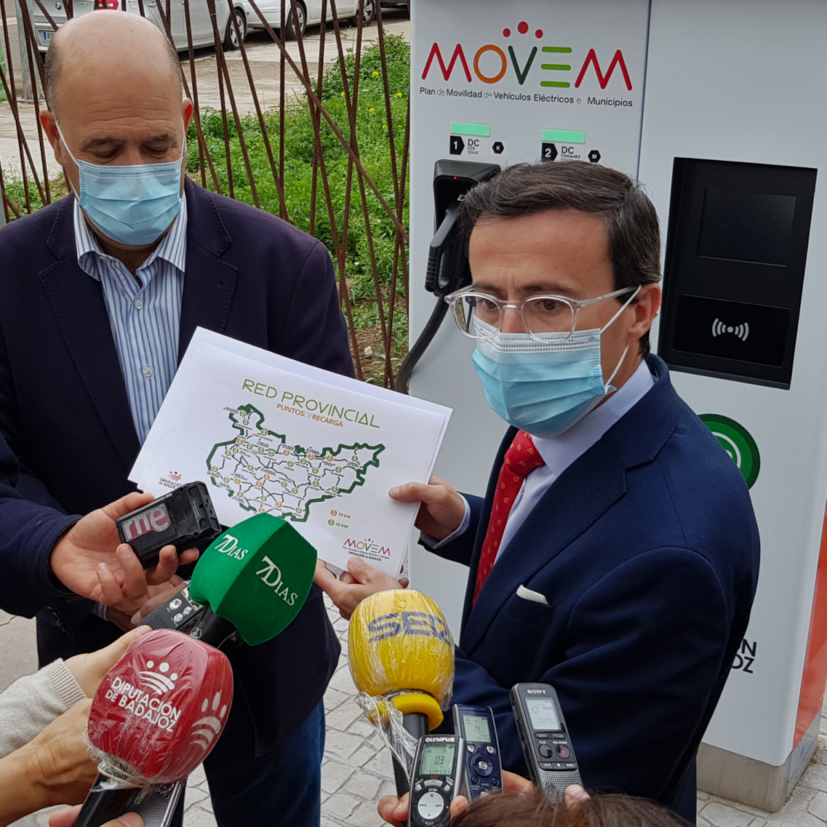 El presidente provincial está convencido que en el territorio nacional “a nivel de proyecto integral, la de Badajoz es la provincia más avanzada, con una auténtica red de electrolineras tan completa y con esta distribución”.