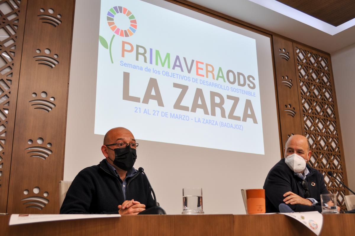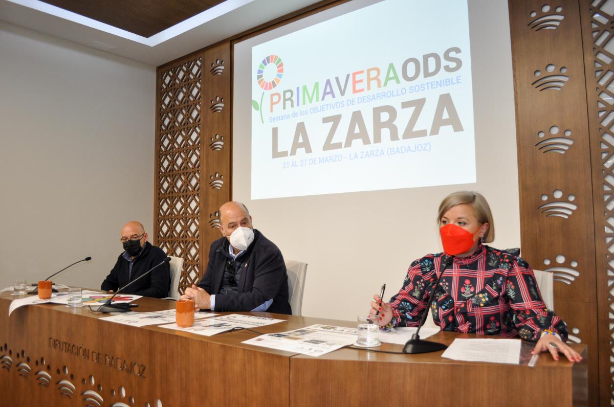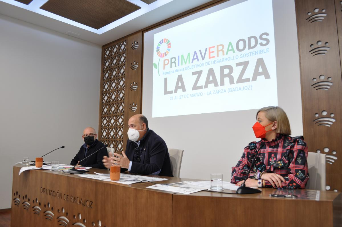 Esta mañana ha tenido lugar la presentación en sala de prensa de la primera edición de la semana de los Objetivos de Desarrollo Sostenible que tendrá lugar en el municipio de La Zarza desde el 21 al 27 de marzo. En la presentación han estado presentes Lorenzo Molina, diputado delegado del Área de Desarrollo Rural y Sostenibilidad, Francisco Farrona, alcalde de La Zarza y diputado delegado del Área de Fomento, y Sara Jiménez, concejala de Cultura e Igualdad del Ayuntamiento de La Zarza.