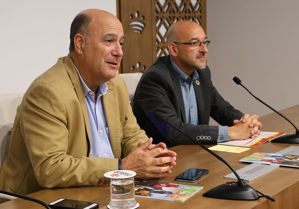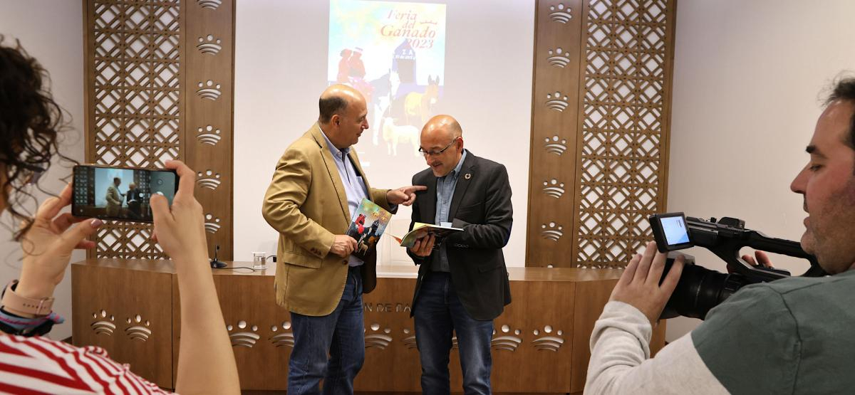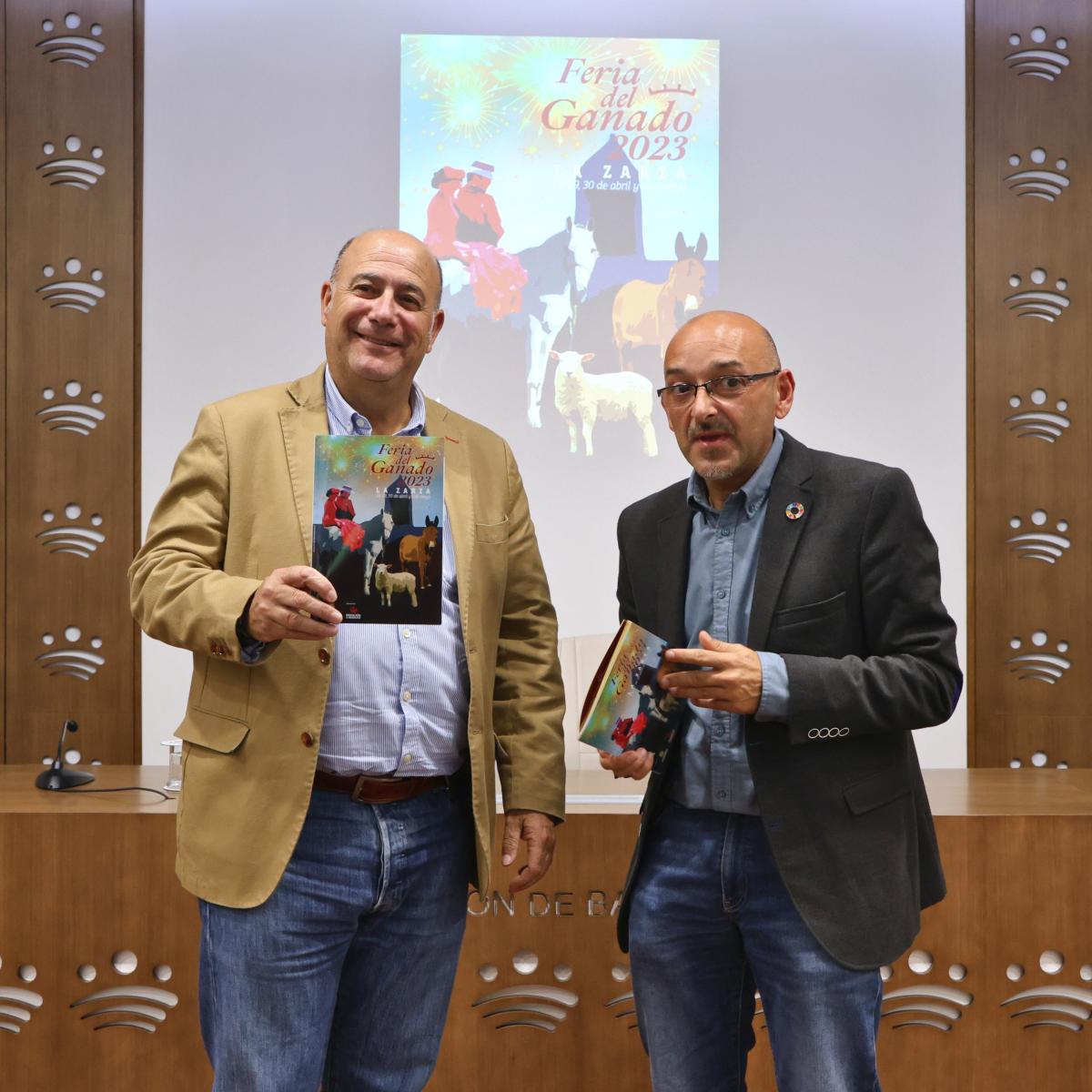 El diputado delegado del Área de Desarrollo Rural y Sostenibilidad de Diputación de Badajoz, Lorenzo Molina, y el diputado delegado del Área de Fomento y alcalde de La Zarza, Francisco Farrona, han presentado esta mañana en rueda de prensa la 68ª edición de la Feria del Ganado de la Zarza, que se desarrollará en el municipio desde el 28 de abril hasta el 1 de mayo.