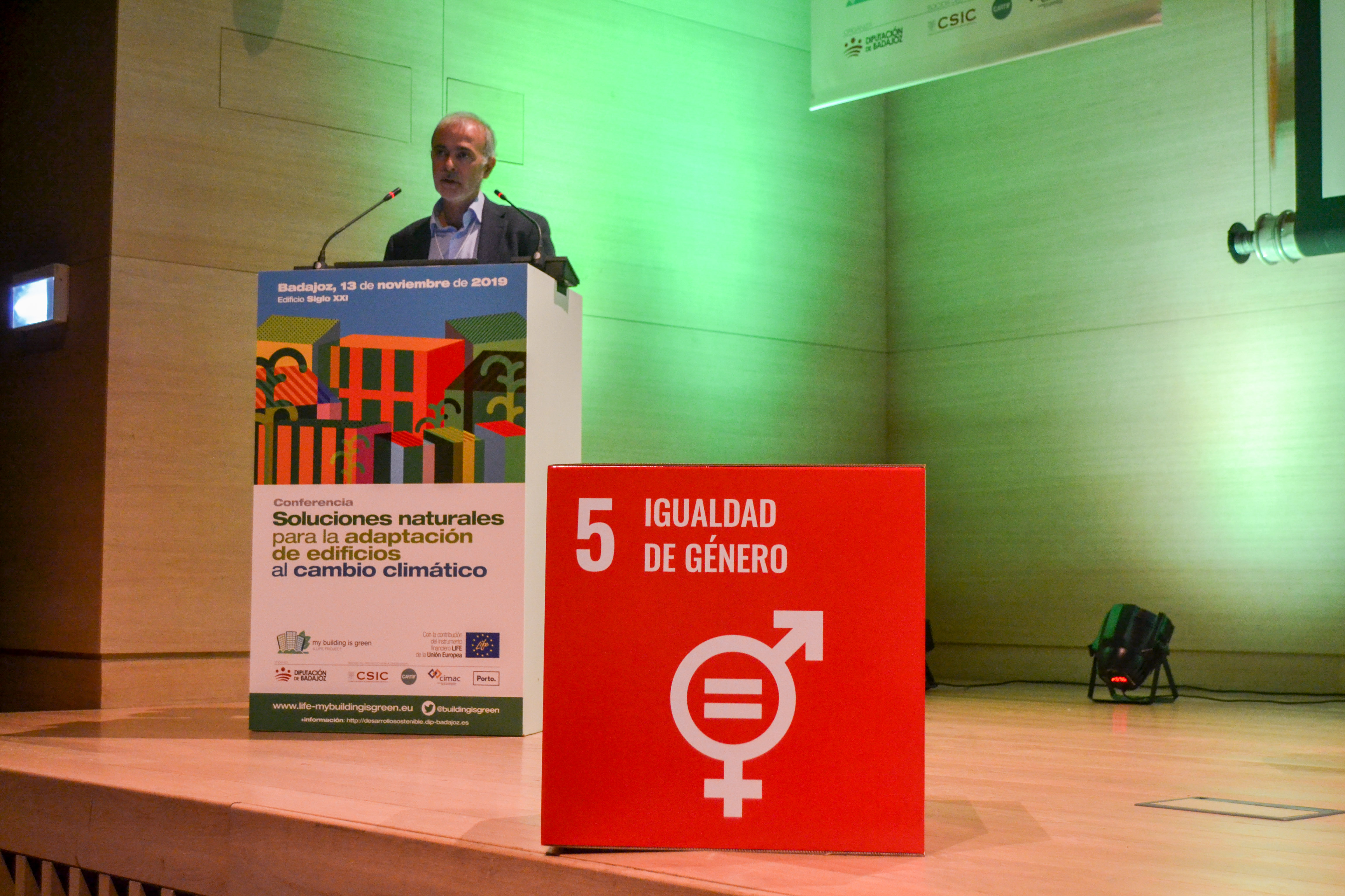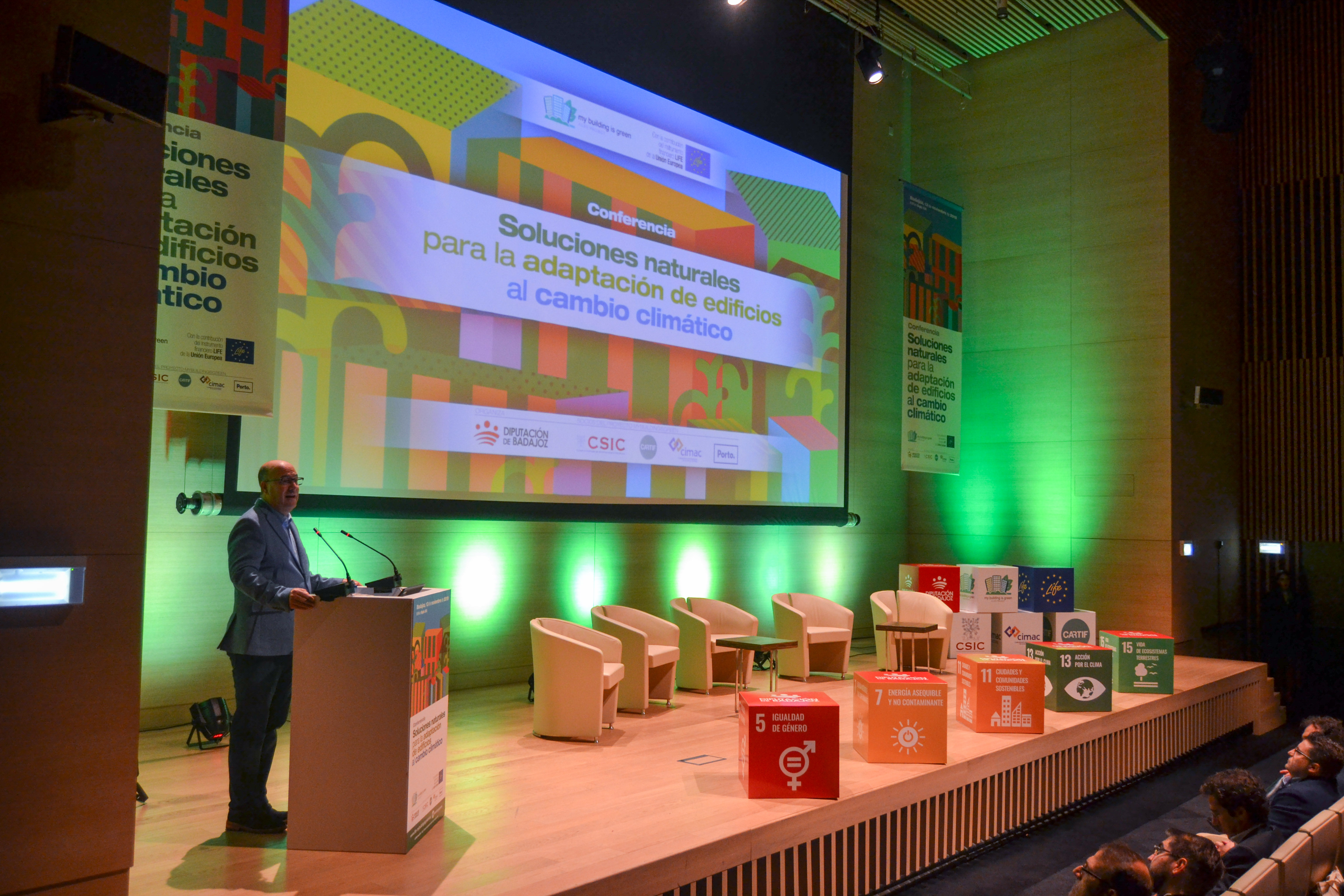 El edificio Siglo XXI de Badajoz, ha acogido esta mañana la conferencia “Soluciones naturales para la adaptación de edificios al cambio climático” organizada por Diputación de Badajoz, a través del Área de Desarrollo Rural y Sostenibilidad y enmarcada dentro de las acciones del proyecto LIFE MyBuildingisGreen y que ha contado con más de un centenar de participantes.