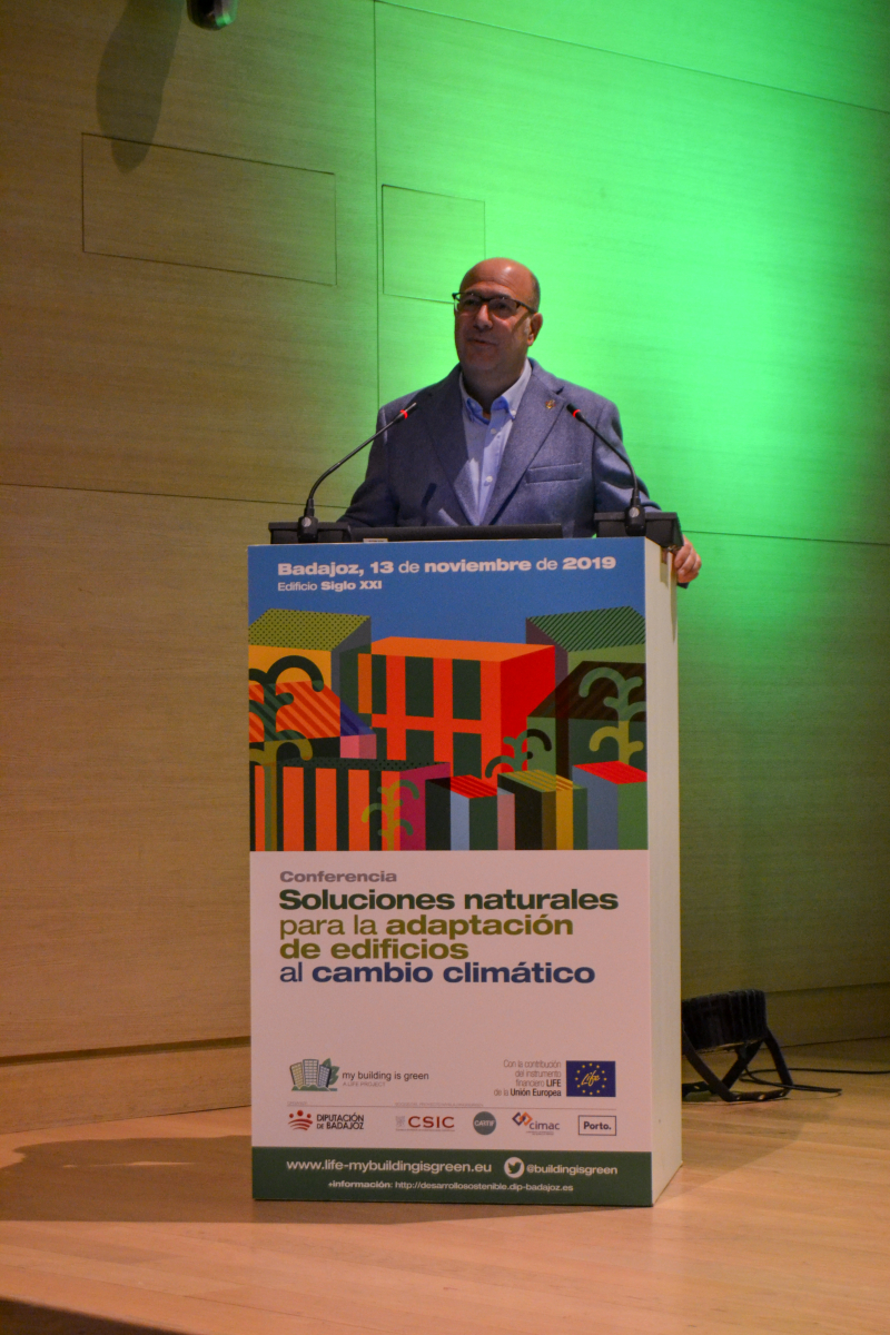 En el acto de inauguración, también ha participado el Diputado Delegado del Área de Desarrollo Rural y Sostenibilidad de la Diputación de Badajoz, Lorenzo Molina, el que ha querido destacar el trabajo que se está realizando desde el área y desde la institución provincial, llevando a cabo acciones y programas de adaptación y mitigación al cambio climático, ya no solo con el proyecto LIFE MyBuildingisGreen, adaptando edificios con soluciones naturales, si no con los planes MOVEM y SMARTENERGÍA en los que a través de un uso eficiente de la energía y reduciendo las emisiones de dióxido de carbono a la atmósfera, se ayuda a dar el paso a una economía baja en carbono.