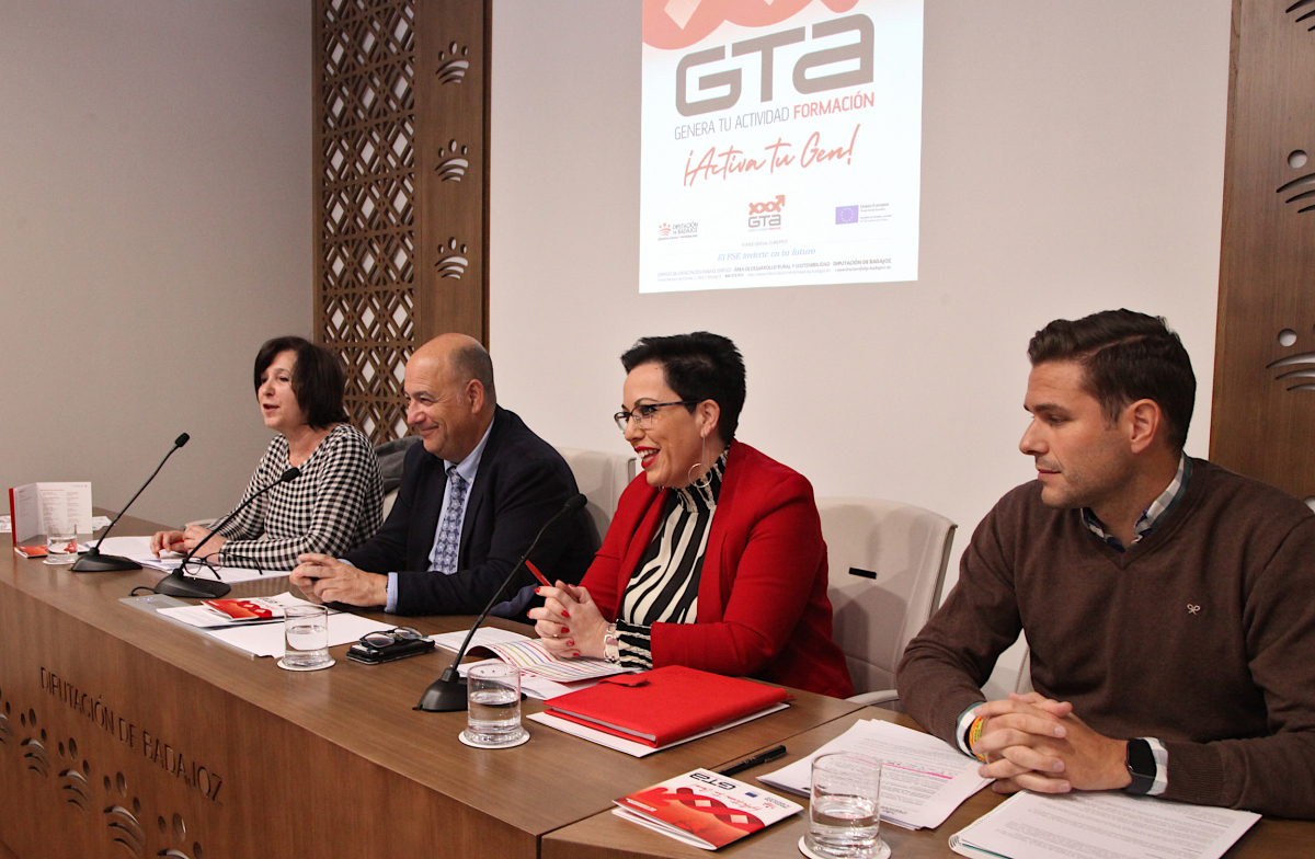 Esta mañana, en la sala de prensa de la Diputación Provincial de Badajoz, se ha presentado el proyecto Genera Tu Actividad Formación (GTA Formación), un proyecto del Servicio de Capacitación para el Empleo del Área de Desarrollo Rural y Sostenibilidad de la Diputación de Badajoz.
