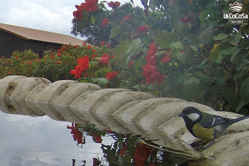 Parus major; Hábitat: Jardín inmerso en una dehesa de encinas, alcornoques y pinos piñoneros (en menor cuantía estos últimos); Localidad: Badajoz (La Cocosa). Cuadrícula UTM: 29SPC79; Altitud: 245; Fecha: 19/10/2018