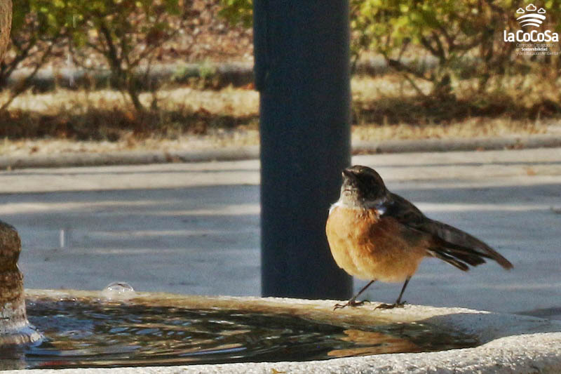 Saxicola rubicola; Hábitat: Dehesa de encinas y alcornoques (en mucho menor número) con áreas cerealistas; Localidad: Badajoz (La Cocosa). Cuadrícula UTM: 29SPC79; Altitud: 244; Fecha: 20/09/2017