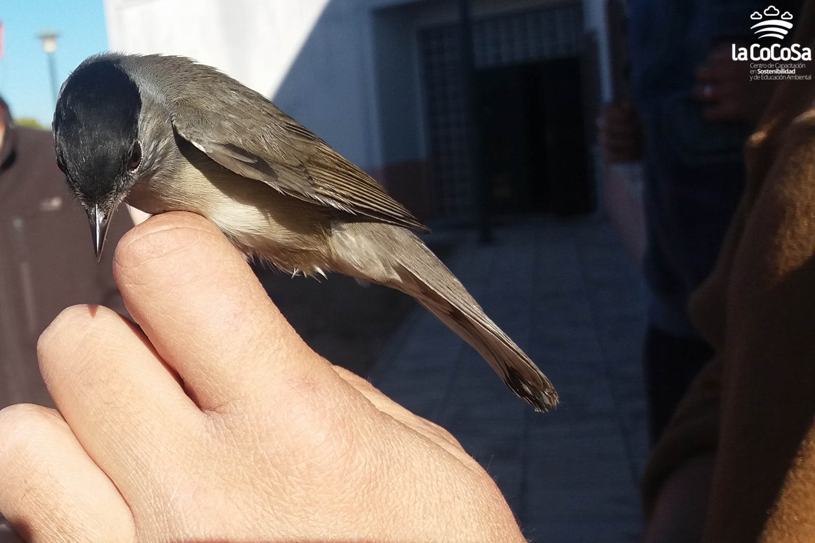 Sylvia atricapilla; Observaciones: Fotografiada en actividad de anillamiento científico, Hábitat: Dehesa de encinas y alcornoques con jardín y plantas exóticas, País: España, Provincia/Distrito: Badajoz, Localidad: La Cocosa, Cuadrícula MGRS: 29SPC79, Altitud/profundidad: 245, Fecha de la toma: 21/11/2017