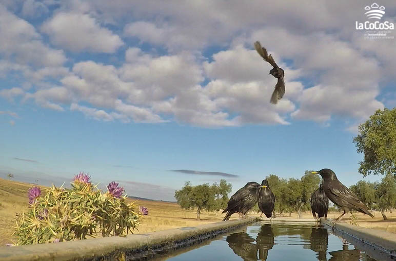 Sturnus unicolor; Hábitat: Borde entre dehesa y área cerealista sin estrato arbóreo; Localidad: Badajoz (La Cocosa). Cuadrícula UTM: 29SPC79; Altitud: 251; Fecha: 26/06/2019