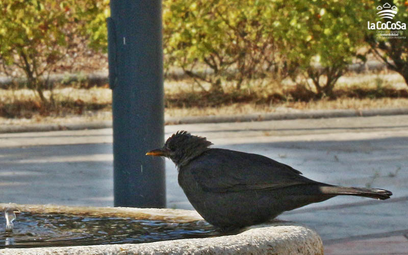 Turdus merula; Hábitat: Dehesa de encinas y alcornoques (en mucho menor número) con áreas cerealistas; Localidad: Badajoz (La Cocosa). Cuadrícula UTM: 29SPC79; Altitud: 244; Fecha: 20/09/2017