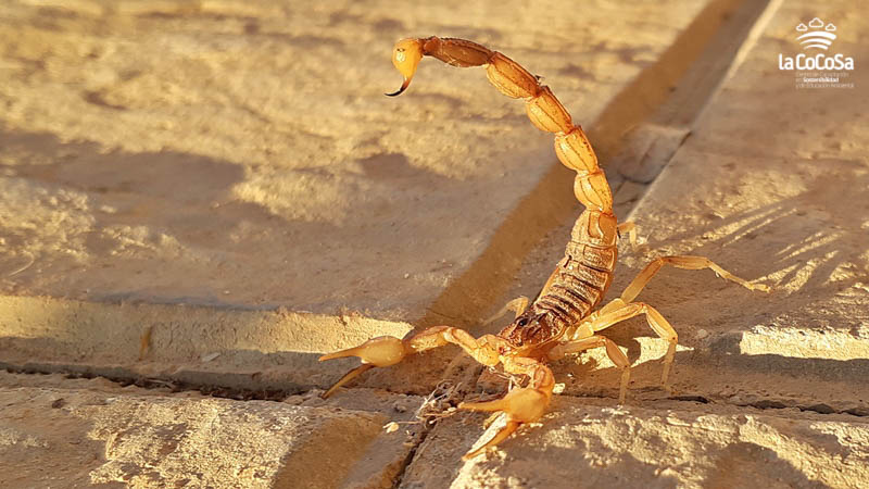 Buthus sp. Localidad: La Cocosa; Hábitat: Jardín inmerso en una gran dehesa; Cuadrícula UTM: 29SPC79; Altitud: 245; Fecha: 10/06/2020