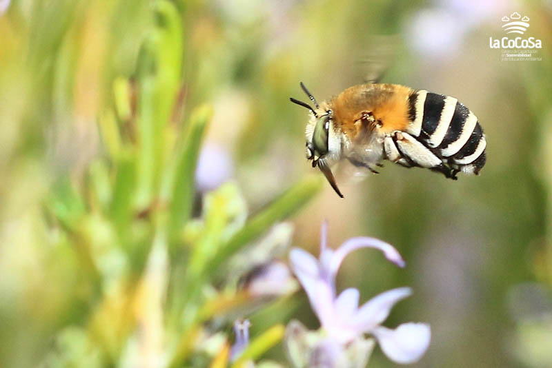Amegilla quadrifasciata. Hábitat: Jardín inmerso en una dehesa de encinas, alcornoques y pinos piñoneros (en menor cuantía estos últimos); Cuadrícula UTM: 29SPC79; Altitud: 244; Fecha: 19/10/2018