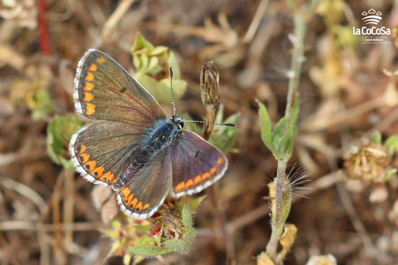 Aricia cramera. Localidad: La Cocosa; Hábitat: Dehesa de encinas y alcornoques con algunos pinos piñoneros; Cuadrícula UTM: 29SPC79; Altitud: 237; Fecha: 06/05/2019