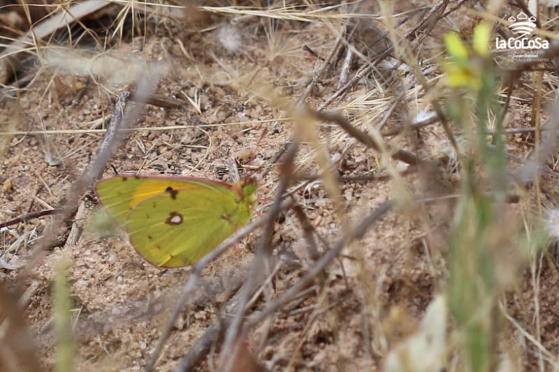 Colias crocea. Localidad: La Cocosa; Hábitat: Dehesa de encinas y alcornoques con algunos pinos piñoneros; Cuadrícula UTM: 29SPC79; Altitud: 237; Fecha: 06/05/2019