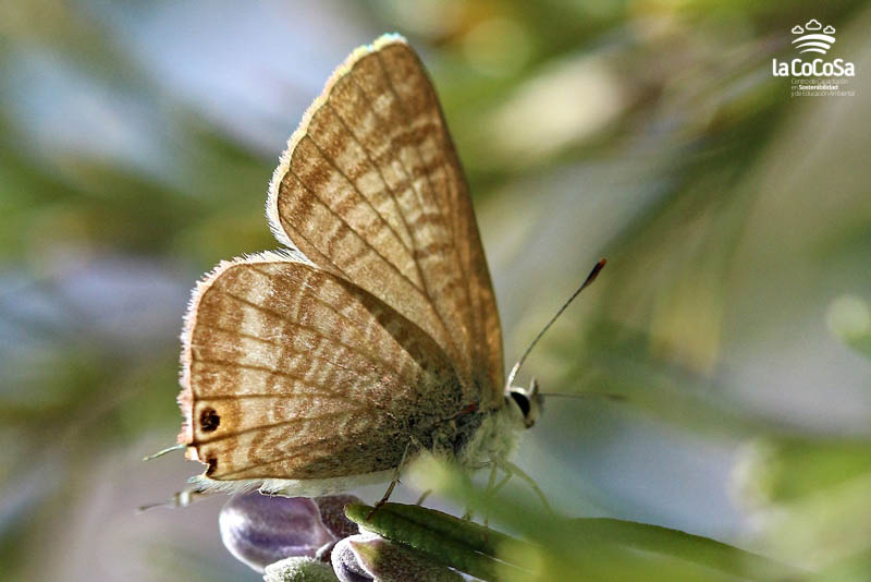Lampides boeticus. Localidad: La Cocosa; Hábitat: Jardín inmerso en una dehesa de encinas, alcornoques y pinos piñoneros (en menor cuantía estos últimos); Cuadrícula UTM: 29SPC79; Altitud: 244; Fecha: 19/10/2018