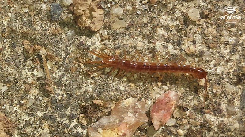 Scutigera coleoptrata (Linnaeus, 1758); Localidad: La Cocosa; Hábitat: Dehesa de encinas y alcornoque y áreas cerealistas despobladas; Cuadrícula UTM: 29SPC79; Altitud: 245; Fecha: 07/02/2017