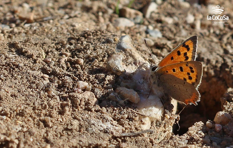 Lycaena phlaeas. Localidad: La Cocosa; Hábitat: Dehesa de encinas y alcornoques con algunos pinos piñoneros; Cuadrícula UTM: 29SPC79; Altitud: 245; Fecha: 24/10/2019