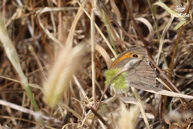 Maniola jurtina. Localidad: La Cocosa; Hábitat: Dehesa de encinas y alcornoques con algunos pinos piñoneros; Cuadrícula UTM: 29SPC79; Altitud: 237; Fecha: 06/05/2019