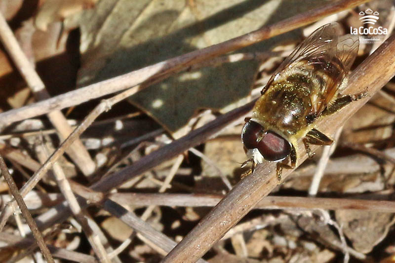 Eristalis sp.; Localidad: La Cocosa; Hábitat: Jardín inmerso en una dehesa de encinas, alcornoques y pinos piñoneros (en menor cuantía estos últimos); Cuadrícula UTM: 29SPC79; Altitud: 244; Fecha: 19/10/2018