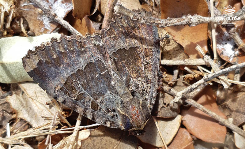 Lemonia philopalus. Localidad: La Cocosa; Hábitat: Jardín inmerso en Dehesa de encinas sobre todo y menos alcornoques con pinos piñoneros dispersos; Cuadrícula UTM: 29SPC79; Altitud: 245; Fecha: 13/12/2018