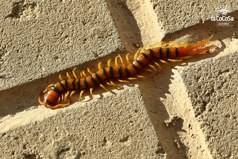 Scolopendra cingulata Latreille, 1829; Localidad: La Cocosa; Hábitat: jardines y construcciones inmersas en dehesa de encinas y alcornoques; Cuadrícula UTM: 29SPC79; Altitud: 245; Fecha: 26/05/2016