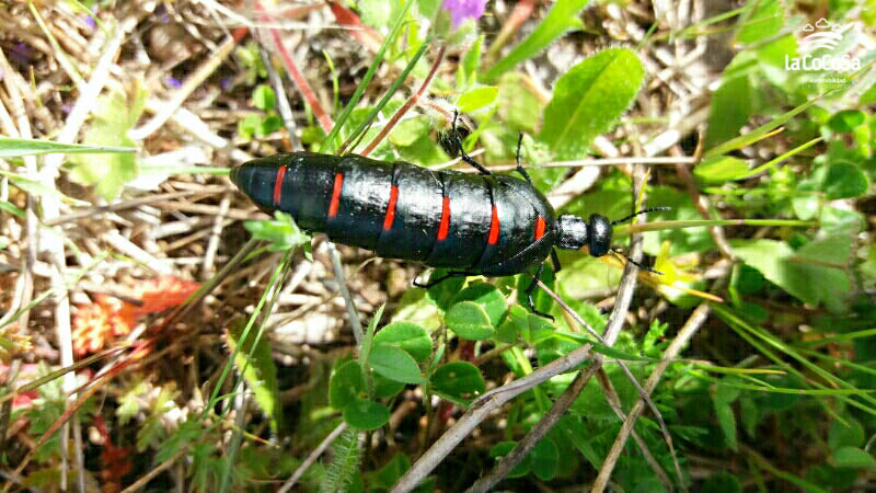 Physomeloe corallifer (Germar, 1818). Localidad: La Cocosa;  Hábitat: Dehesa de encinas y alcornoques con algunos pinos piñoneros; Cuadrícula UTM:  29SPC78; Altitud: 294; Fecha: 05/04/2018