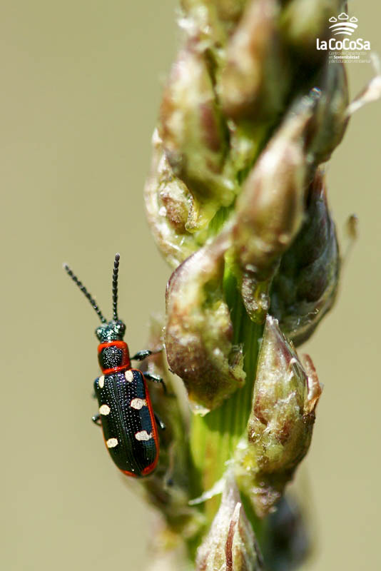 Crioceris asparagi (Linnaeus, 1758). Localidad: La Cocosa;  Hábitat: Dehesa de encinas y alcornoques con algunos pinos piñoneros; Cuadrícula UTM:  29SPC79; Altitud: 237; Fecha: 28/03/2018