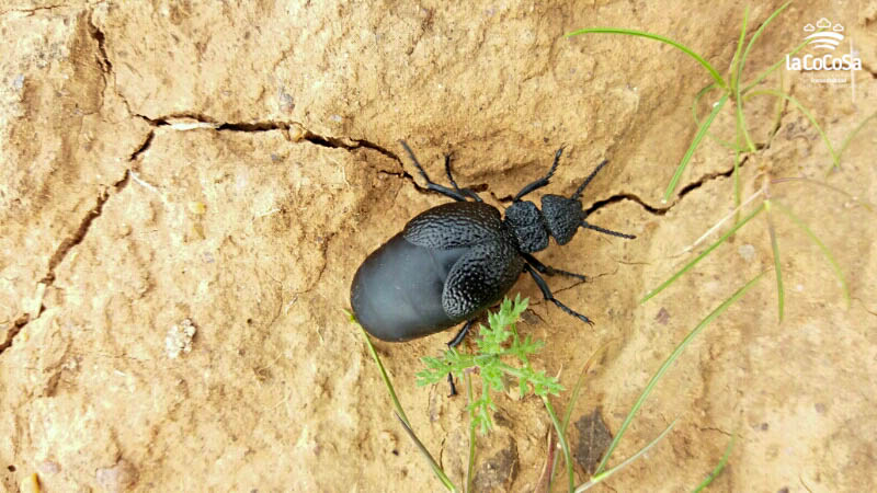 Meloe (C.) tuccius (Rossi, 1792). Localidad: La Cocosa;  Hábitat: Dehesa de encinas y alcornoques con algunos pinos piñoneros; Cuadrícula UTM:  29SPC78; Altitud: 294; Fecha: 20/06/2013