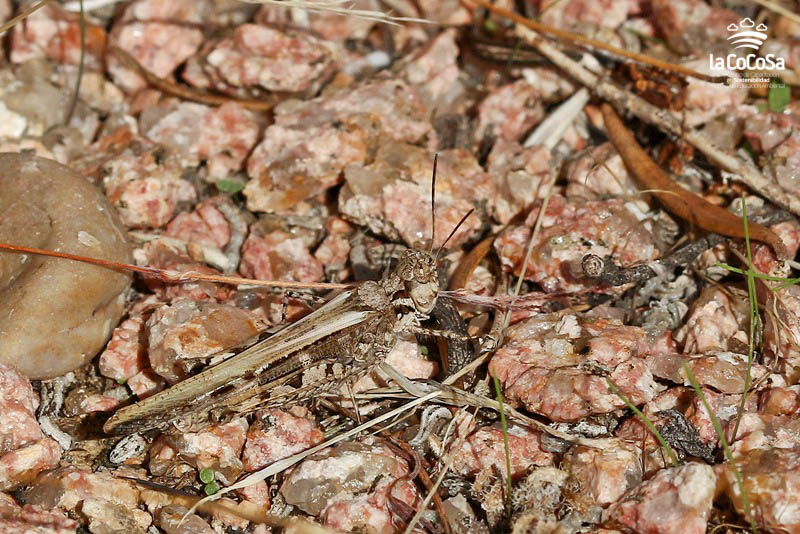 Acrididae; Localidad: La Cocosa;  Hábitat: Dehesa de encinas y en menor medida alcornoques y algunos pinos piñoneros; Cuadrícula UTM:  29SPC79; Altitud: 245; Fecha: 26/05/2016