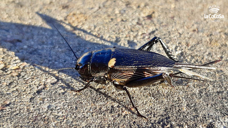 Gryllus (Gryllus) bimaculatus De Geer, 1773. Localidad: La Cocosa;  Hábitat: Dehesa de encinas y alcornoques con algunos pinos piñoneros (fotografiado en jardín en la dehesa); Cuadrícula UTM:  29SPC79; Altitud: 245; Fecha: 30/09/2019