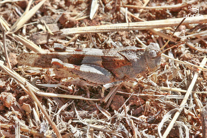 Oedipoda charpentieri Fieber, 1853. Localidad: La Cocosa;  Hábitat: Dehesa de encinas y alcornoques con algunos pinos piñoneros; Cuadrícula UTM:  29SPC79; Altitud: 242; Fecha: 25/09/2019