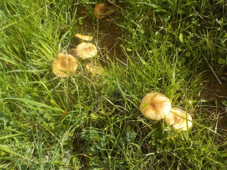Senderuelas (Marasmius oreades (Bolton) Fr (1836); Hábitat: Zona rural, prados; Localidad: Retamal de Llerena; Paraje: Camino hacia Fuente Santa; Cuadrícula UTM: 30STH57; Altitud: 436; Fecha: 21/11/2018.