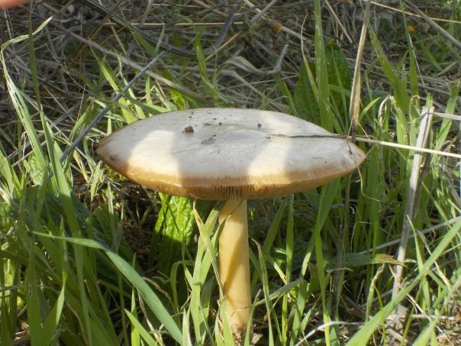 Volvaria vistosa (Volvopluteus gloiocephalus (DC.) Vizzini, Contu & Justo 2011); Hábitat: Zona rural, prados; Localidad: Retamal de Llerena; Paraje: Camino hacia Fuente Santa; Cuadrícula UTM: 30STH57; Altitud: 436; Fecha: 21/11/2018.