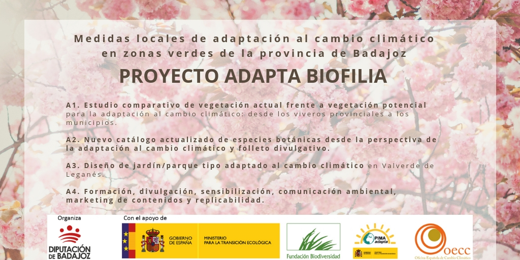 Si el año pasado, se desarrolló un trabajo más global, que integraba una visión más generalizada sobre lo que supone poner en marcha un plan de adaptación al cambio climático en el ámbito local, que debe abordar medidas blandas, verdes y grises, este año, el proyecto de adaptación local al cambio climático se centra especialmente en la biodiversidad, aprovechando, que Diputación de Badajoz gestiona los viveros desde los que se distribuyen plantas a municipios de la provincia de Badajoz.